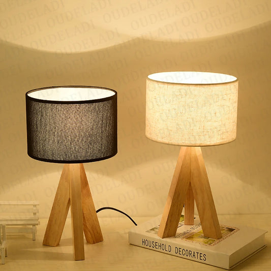 Lumière d'Éclat – Lampe de Table en Bois avec Abat-Jour Tissu Noir et Blanc