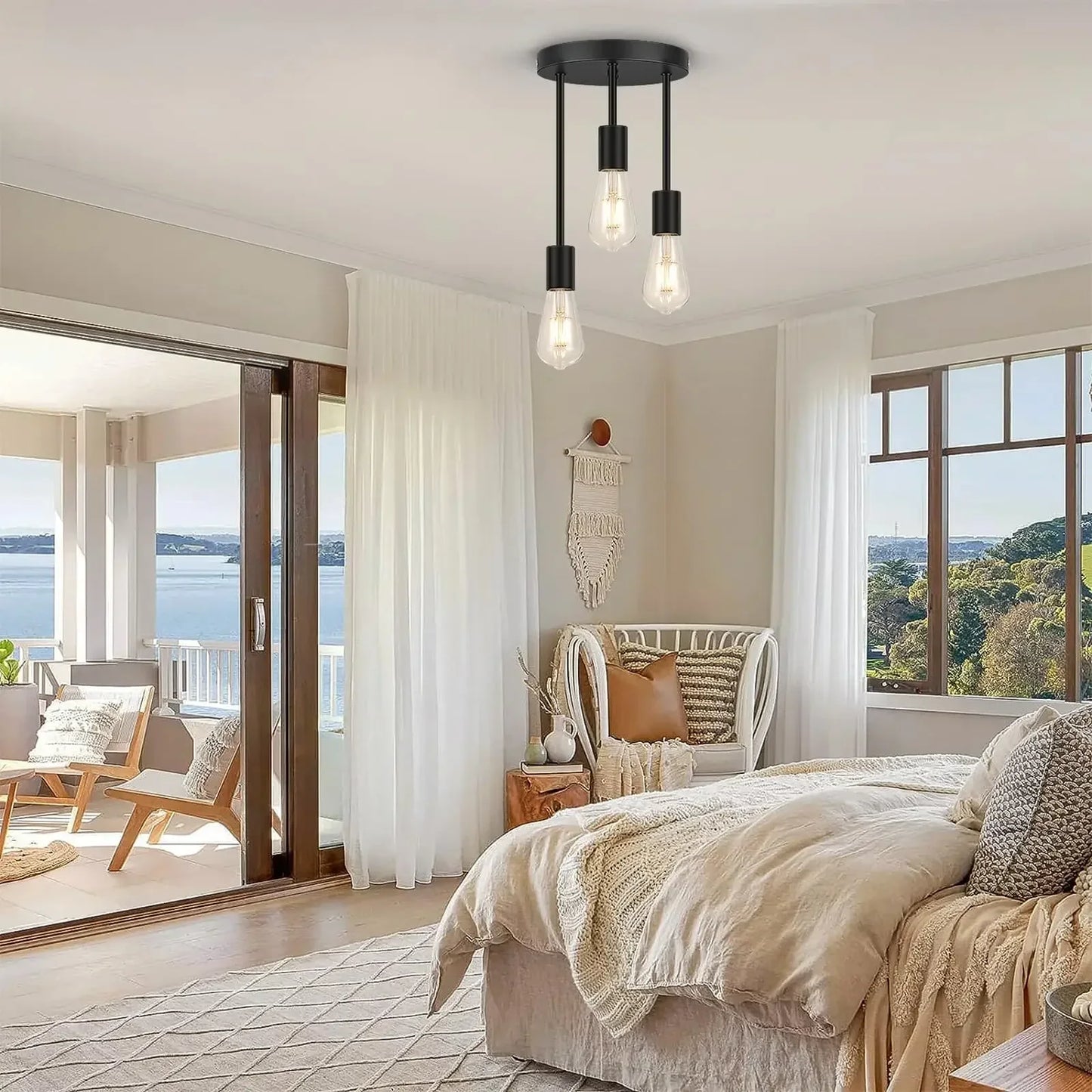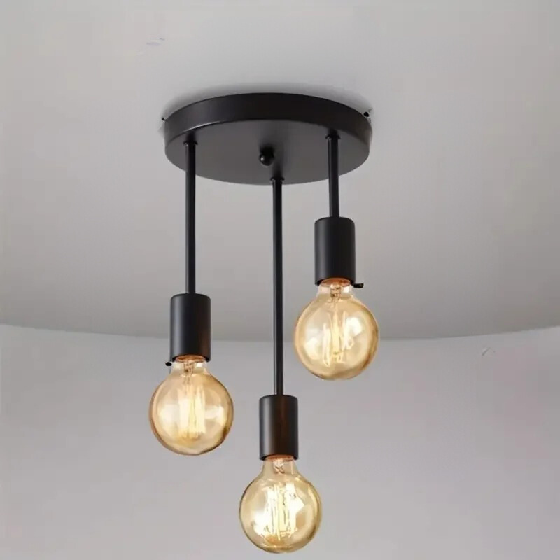 La lampe de plafond LumièreIndustrielle à 3 bras allie charme vintage et fonctionnalité moderne. Avec son élégant design noir, elle s'intègre parfaitement dans divers espaces tels que la cuisine, le balcon ou le salon. Ce luminaire apporte une touche stylée et chaleureuse à votre intérieur tout en offrant un éclairage optimal.