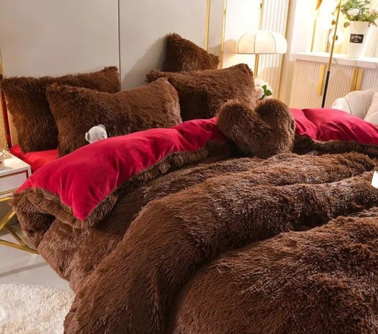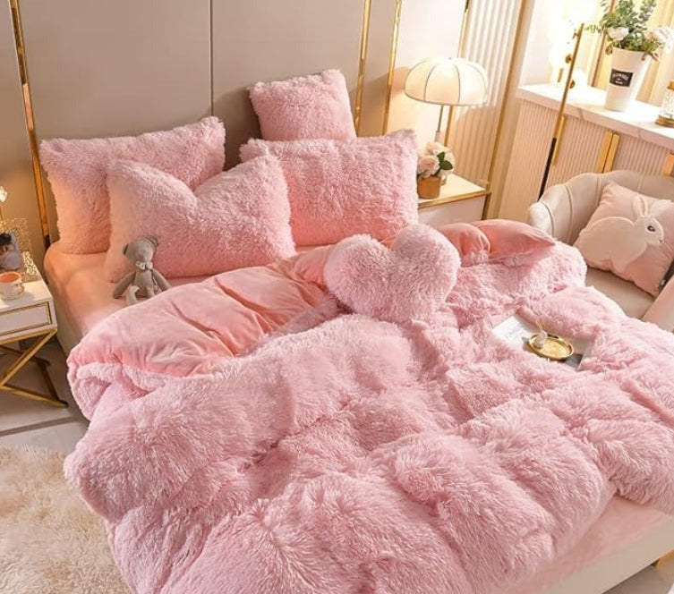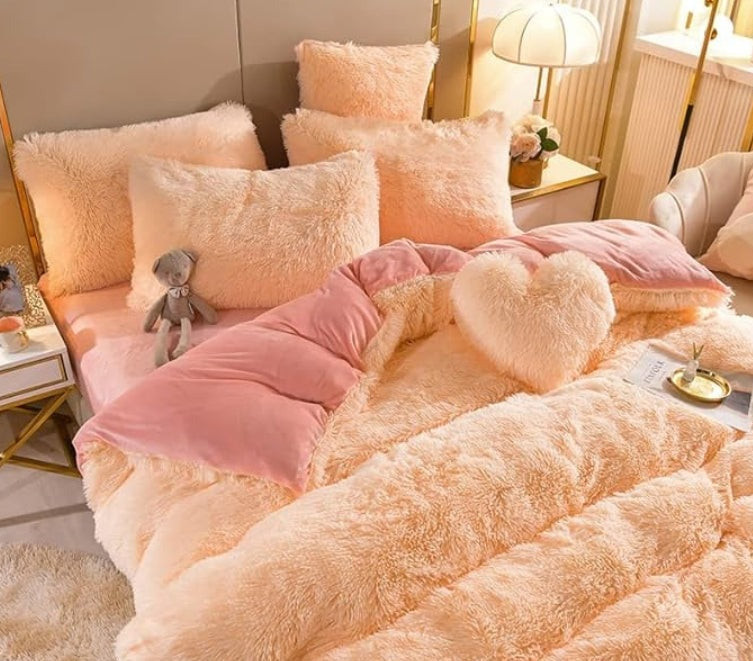 Contenu de l'Emballage: 1 x VeloursChic Housse de Couette en Velours, 1 x Drap-Housse, 1 x Coussin en Forme de Cœur, 2 x Taies d'Oreiller